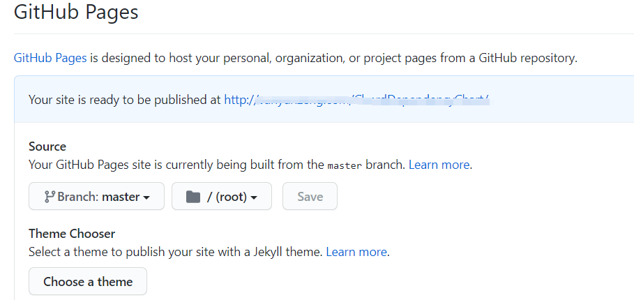 将足迹数据修改完毕后,将项目传到你的 github 中进行托管,然后启用你的足迹地图项目的 github Page 服务,会得到服务地址: http://xxxx/xxxx/.