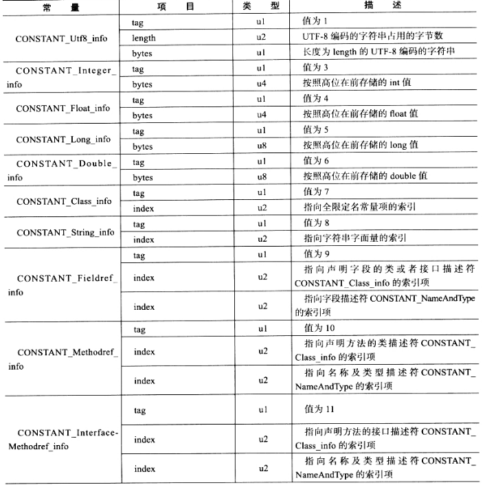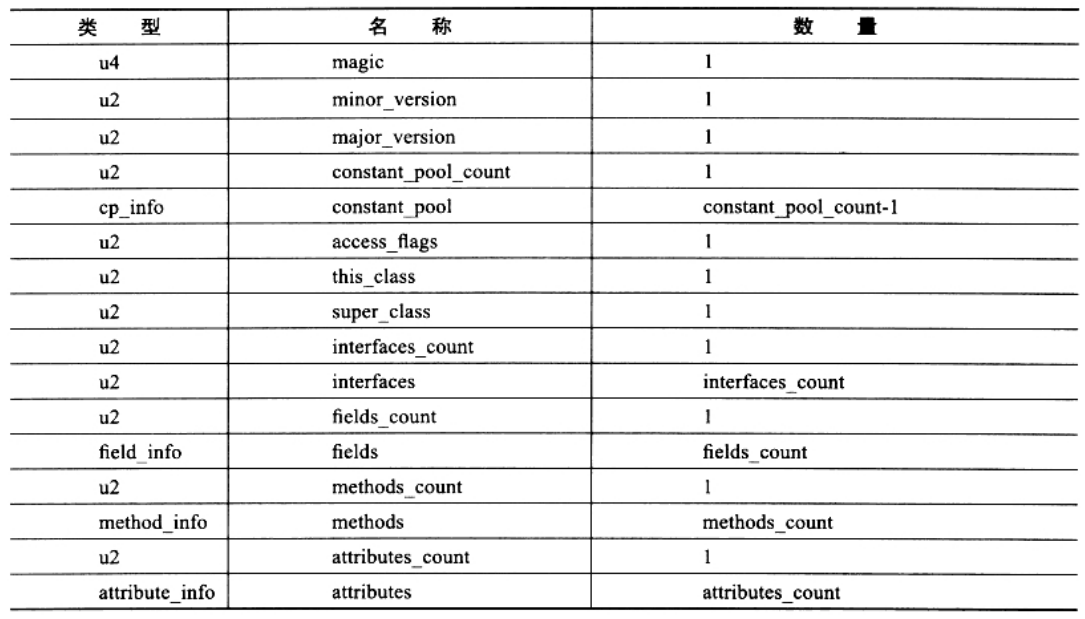 下面是从《深入了解JVM》中摘的Class文件的表结构。