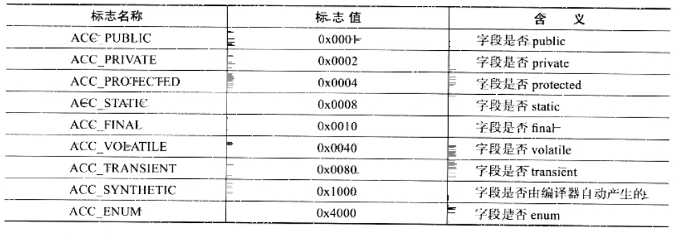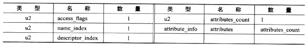 字段表(field_info)用来描述接口或类中声明的变量,字段包括类级别变量以及实例级别变量。但不包括方法内部声明的局部变量。