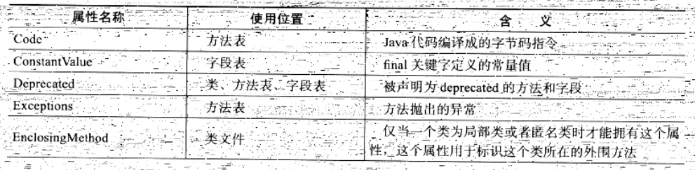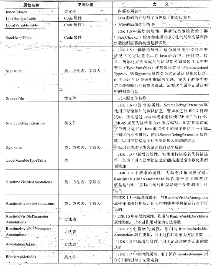 《Java虚拟机规范(Java SE 7)》中,预定义的属性为: