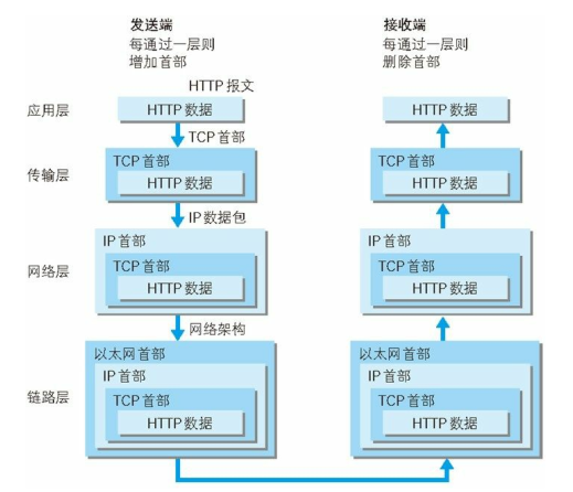 在解析数据时,按照数据包装的逆序层层解包(去除每一层打上的首部信息),最终获得请求的HTTP报头。