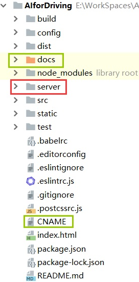 如下图所示,项目框架是基于Vue项目框架实现,首先通过Vue-cli搭建Vue项目(此处网上教程很多,略过),然后再框架下创建Server文件夹,用来存放服务器端代码。